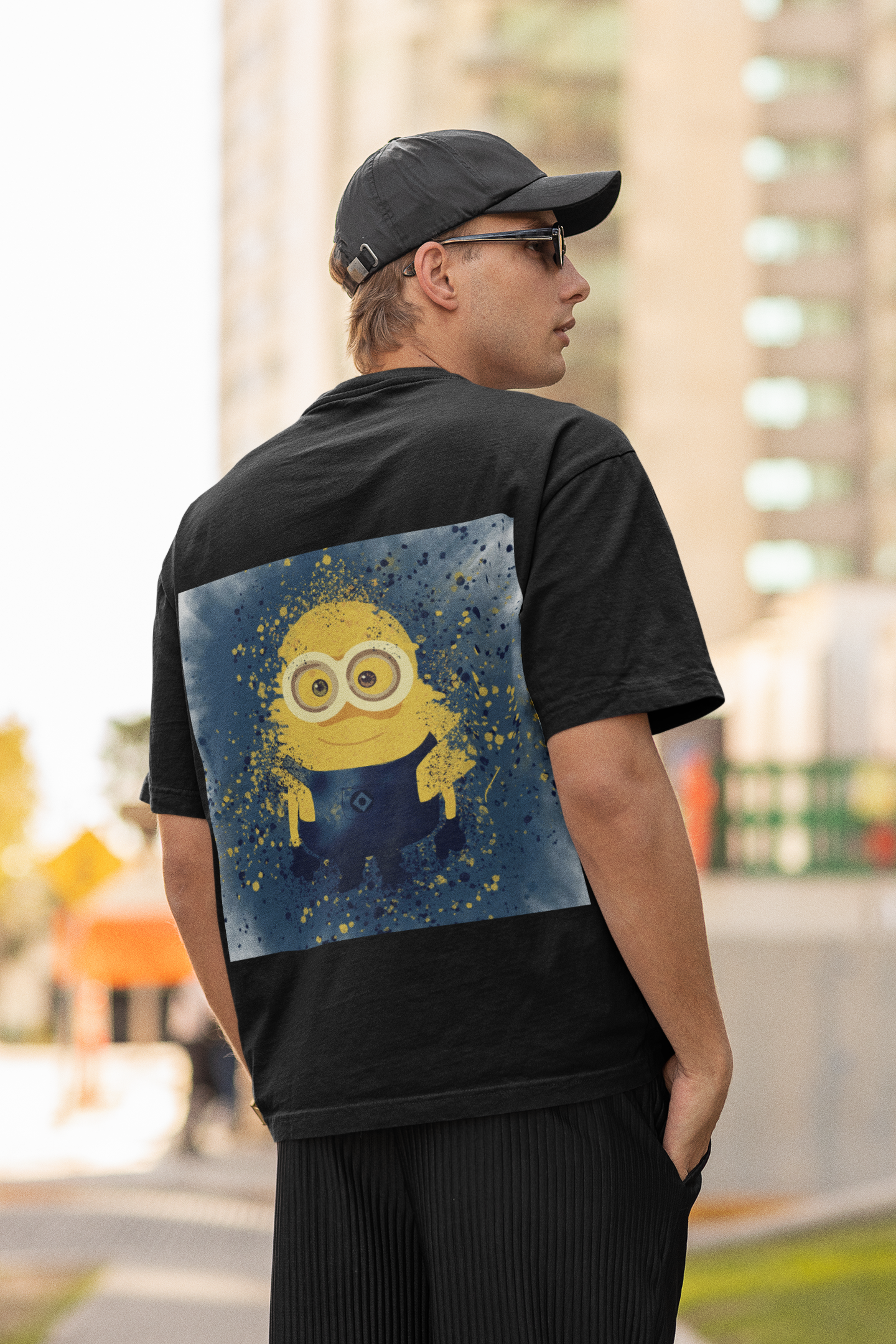 The detailed Minion graphic on the back of the shirt pops against the classic black or crisp white background, creating a fun and eye-catching look. Whether you're a fan of the movies or simply appreciate quirky designs, this shirt is a must-have.