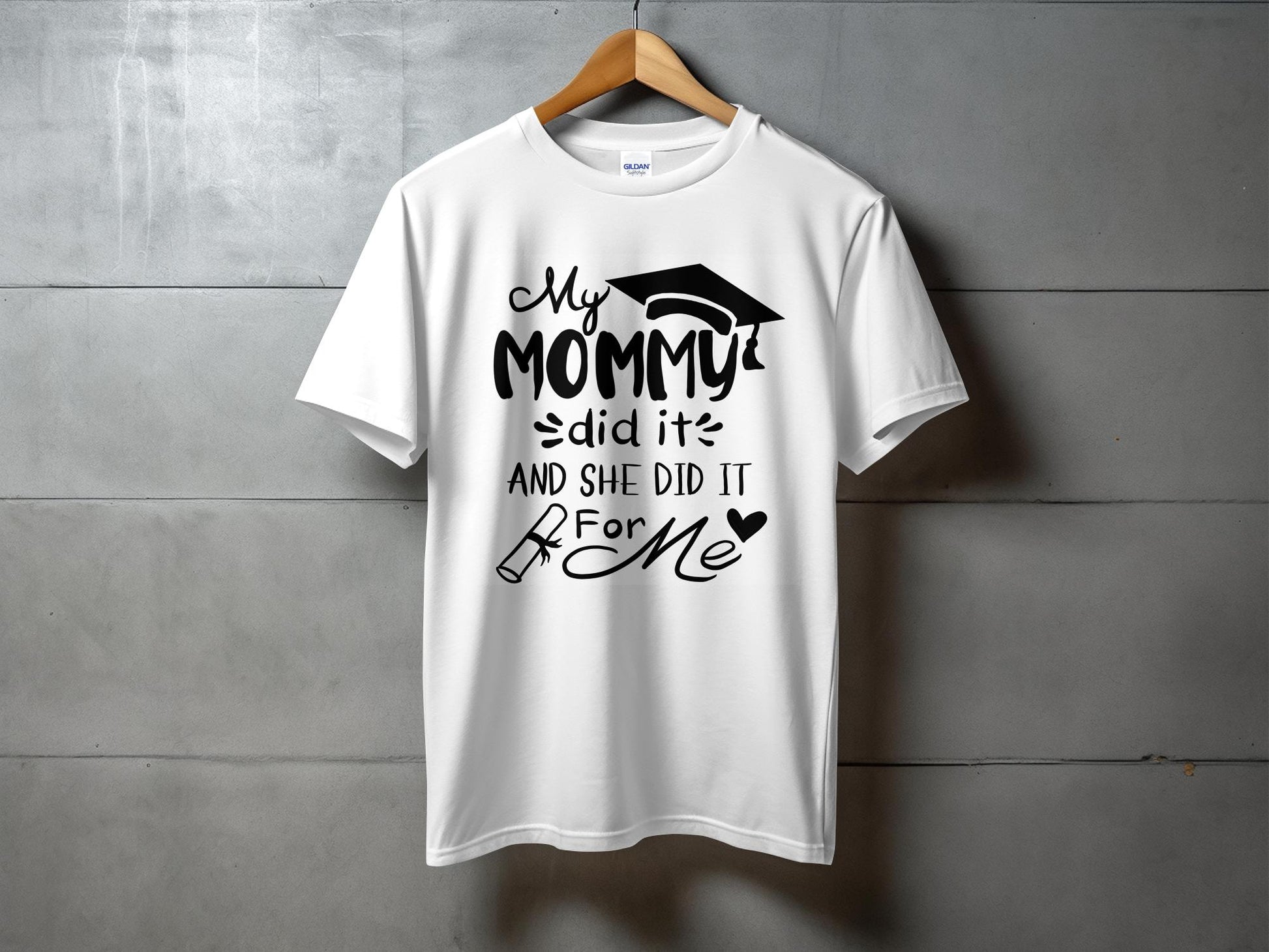 Celebrate your graduation milestone in style with our "My Mommy Did It For Me" Graduation Print White T-Shirt. This shirt is not just a symbol of achievement but also a heartfelt tribute to the love and support of a parent.